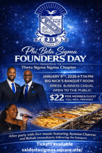 Join the Theta Sigma Sigma chapter of Phi Beta Sigma as we celebrate our Founder’s Day celebration this Friday! Come dine and dance with us. #J9 #pbs1914 #phibetasigma #bignicks