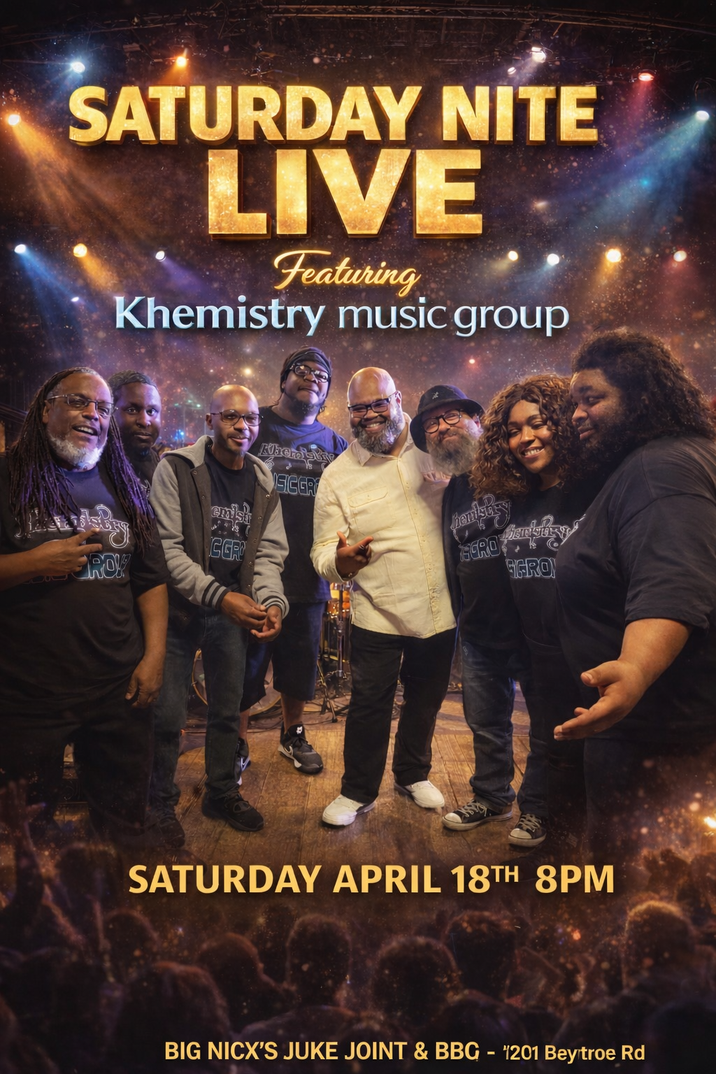 Join us for an unforgettable night of live music featuring the Khemistry Music Group (229) — bringing soul, groove, and high energy to the stage! 🗓️ Date: Friday, April 17th, 2026⏰ Time: 8:00 PM📍 Location: Big Nick’s Juke Joint 1201 Baytree Rd, Valdosta, GA🔗 Reservations: Pull up with your crew for good food, great music, and grown folks’ vibes. Secure your spot early! |